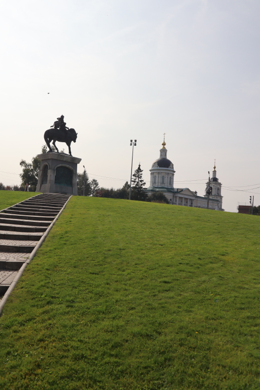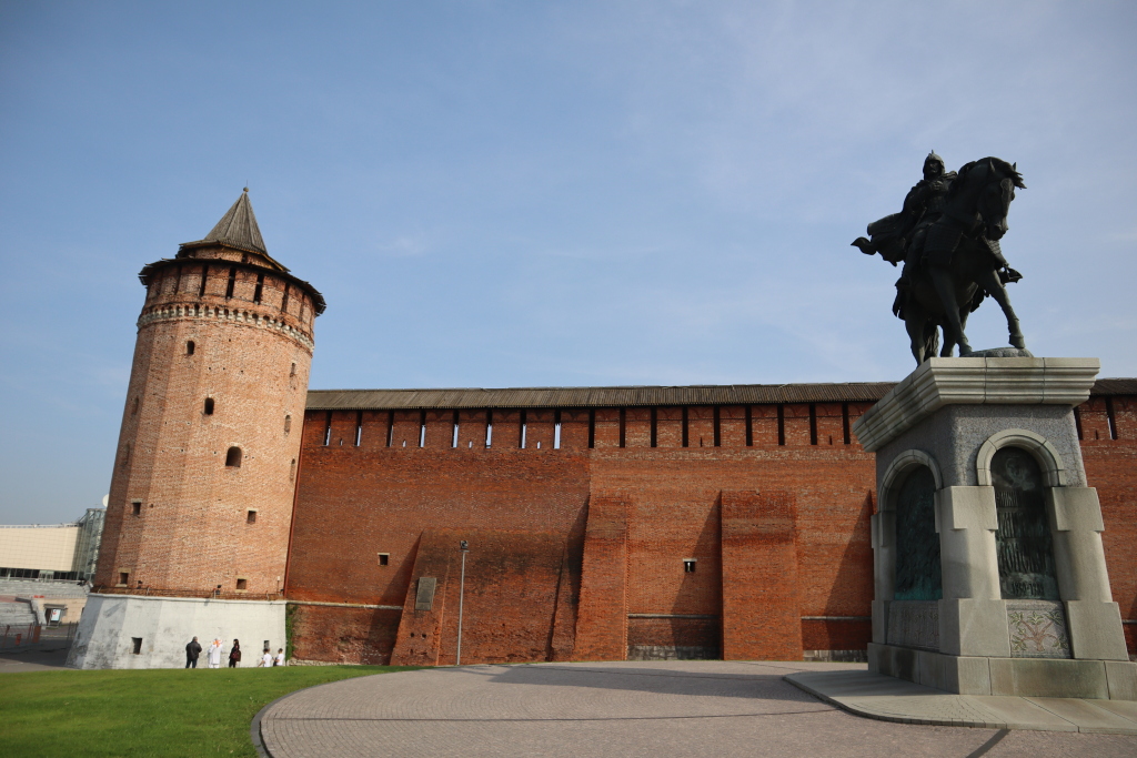 Памятник святому благоверному князю Дмитрию Донскому в Коломне у стен Кремля. Он напоминает о победе русских дружин над полчищами монголо-татар в Куликовской битве.