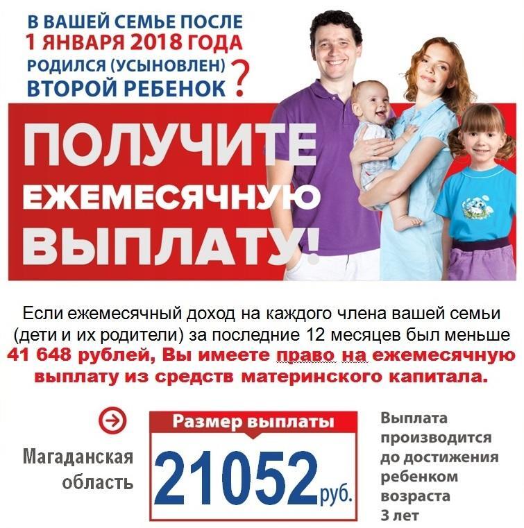 Получить данную ежемесячную выплату могут семьи с низкими доходами, являющиеся гражданами РФ, в которых с 1 января 2018 года родился или усыновлен второй ребенок. Что значит семьи с низкими доходами? Это когда размер дохода на одного члена семьи не превышает 2-кратную величину прожиточного минимума трудоспособного населения.