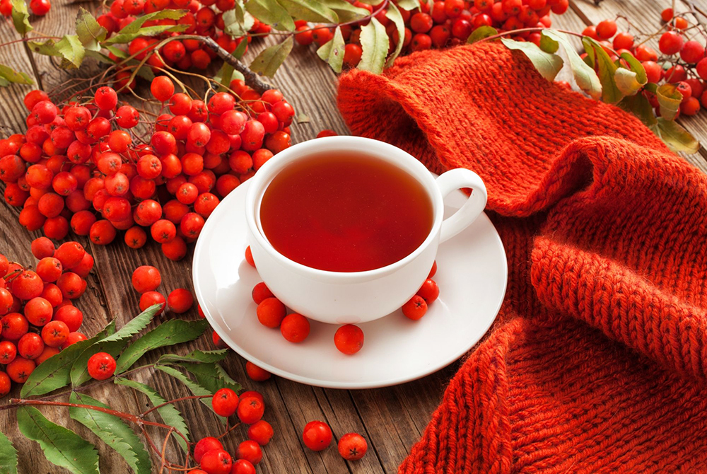 Укрепляет нервы и иммунитет чай или коктейль из рябиновых ягод. Ягоды кипятят в воде минуту, затем воду сливают, и вновь заливают водой, добавляя нарезанное яблоко, корицу, мускатный орех, натертый корень имбиря. Всё доводят до кипения, смешивают блендером и немного остудив, добавляют мед.