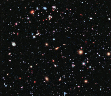 Поле Hubble Extreme Deep Field содержит 5 500 галактик, включая некоторые из них, возраст которых составляет 13,2 млрд лет. Авторы: НАСА, Европейское космическое агентство, Г. Иллингворт, Д. Маги и П. Оеш (Калифорнийский университет, Санта-Крус), Р. Боувенс (Лейденский университет) и команда HUDF09.