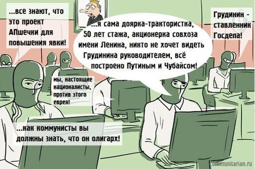 Понятно, что большинство этих патриотов любит Россию и её выдающегося руководителя посменно, с 9 утра и до 5 вечера или с 11 вечера и до 7 утра, поскольку истинная любовь должна быть круглосуточной, с перерывом на обед.
