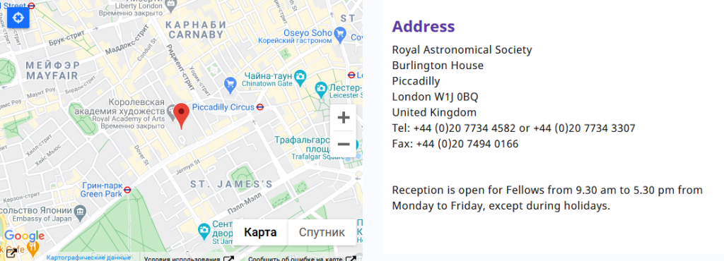 Заседания общества проходят в Бёрлингтон-хаусе на улице Пикадилли в Лондоне, а также по всему Соединённому Королевству.