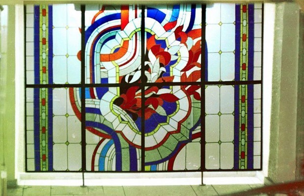 Целую серию витражей размером 4 квадратных метра каждый изготовил на швейной фабрике в 1984 году художник-монументалист Сергей Апрышко.