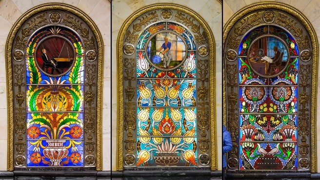 На станции Новослободская в Московском метро 32 витража. По эскизам советского художника Павла Корина они были созданы мастерами из Риги с использованием витражей из католических соборов Латвии.