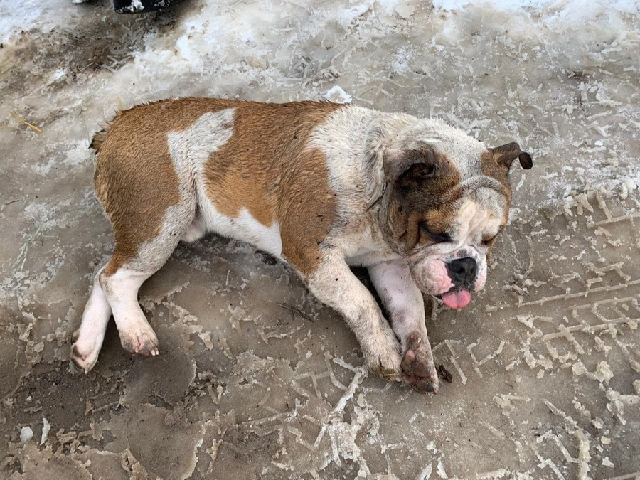 Английский бульдог, бедняжка. Хоть бы выжил. А тот, кто хотел его убить, получит по заслугам.