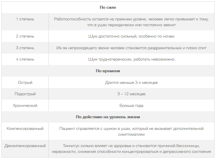 Уровень шума в ушах классифицируется по силе, – степени – времени и воздействию на качество жизни.