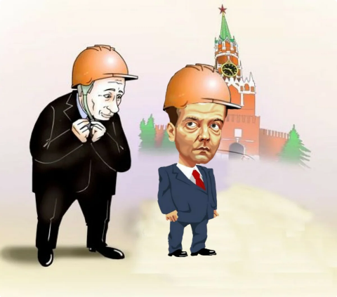 Заходит в Кремль и просит пригласить к нему Вовку и Димку.