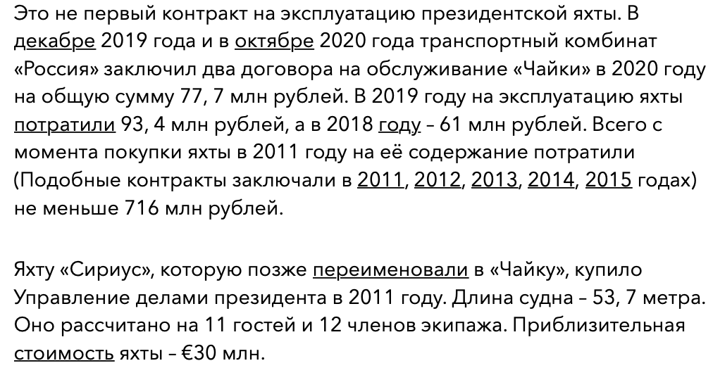 Валентина! Так то оно так, но прочие олигархи за свои яхты как бы из своих денег платят. А тут - статья бюджета, т.е. из нашего с вами кармана.