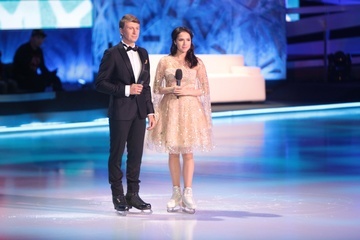 Ягудин подарил Маше новенькие коньки, а Загитова преподнесла ей мягкую игрушку. Спортсмены пожелали Маше удачи в нелегком деле.