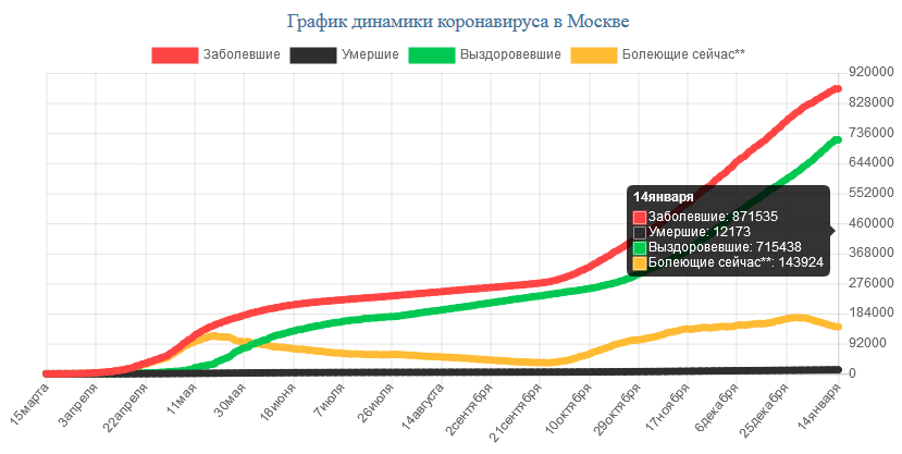 На сегодня, 14.01.2021, в Москве всего зарегистрировано: