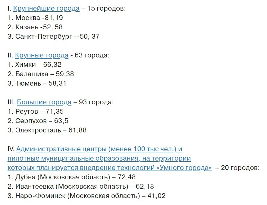 «Умный город» создавался для внедрения цифровых технологий в жизнь общества и городскую среду. Сейчас это касается нескольких десятков городов с численностью населения свыше 100 000 человек. Большинство введений все еще на бумаге, но уже можно увидеть первые результаты.
