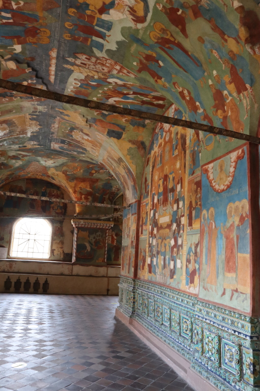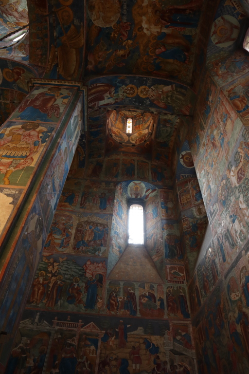 Роспись содержит много бытовых сцен. Внутреннее убранство храма дополняют золочёный резной иконостас с коллекцией древнейших икон, расписные порталы и изразцовый фриз, богатая церковная утварь. На фронтоне западного крыльца помещена живописная композиция «Распятие», которую обновляли при каждом ремонте.