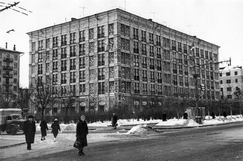 О строительстве типовых жилых домов в СССР задумались еще до Второй мировой войны. Дом 1940 года по адресу Ленинградский проспект, 27 в Москве стал одним из первых прототипов возможной панельной застройки. Ажурным его называют из-за узорчатых решеток на фасаде здания — так архитекторы хотели скрыть от прохожих захламленные жителями балконы. На первом этаже здания расположены магазины и предприятия быта.