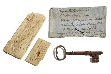 Годы и поколения спустя реликвии нашли потомки Фокса в сундуке, стоявшем в старом доме их семьи. Они и решили продать ключ.