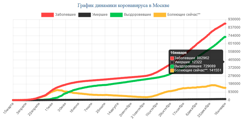 На сегодня, 16.01.2021, в Москве всего зарегистрировано: