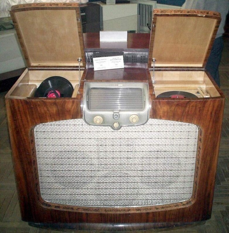 Эта радиола марки RCA-Victor 381 выпуска 1934 года. В год выпуска продавалась за 375 долларов, т.е. относилась к категории элитной аппаратуры.