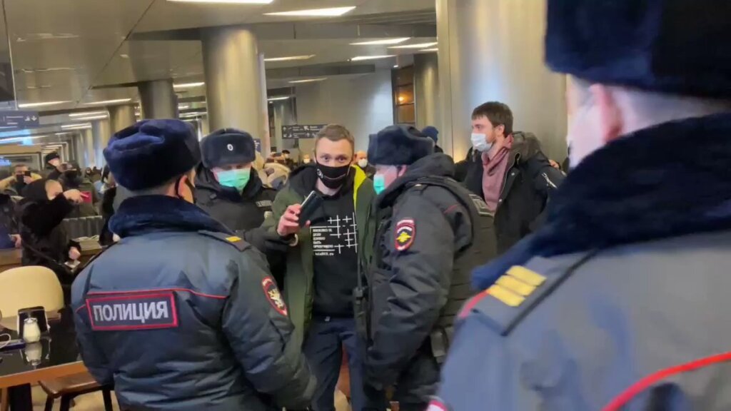 То, что Навального задержат сразу по прилёте, в этом сомнений не было. Были сомнения по поводу того, куда сядет самолёт. Некоторые считали, что самолёт могли посадить и в Магадане. Пока самолёт летел, несколько сотен сторонников оппозиционера, автозаки, и полицейские уже ждали его в аэропорту. Помимо всего этого, в аэропорту разряжали обстановку фанаты Ольги Бузовой. Она должна была прилететь с Питера В то же время. Правда, никто из фанатов не смог объяснить, кто их надоумил стоять на морозе с плакатами, да и ещё за 3 часа до прилёта. «Я на встречу Ольги Бузовой», — с этими словами можно было спокойно пройти в аэропорт. Остальным, чтобы войти требовалось показать билет на рейс. Олегу Навальному пришлось купить билет, чтобы попасть внутрь и встретить брата. Большинство сторонников Навального стояли на улице.