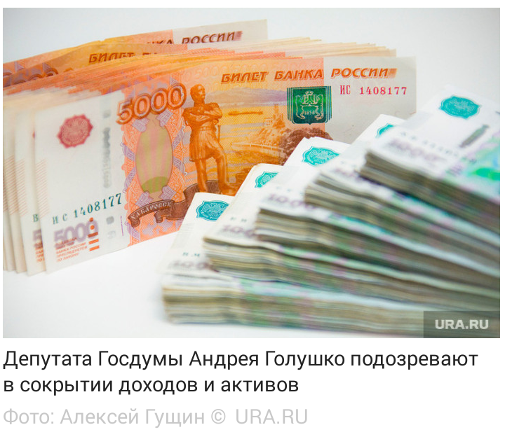 «При этом, по сведениям Росфинмониторинга и ФНС, примерно в тот же период, с 2010 по 2017 годы, только на счета господина Голушко в Газпромбанке, Сбербанке и Бинбанке поступило 909,9 млн руб., из которых почти 360 млн были внесены наличными.