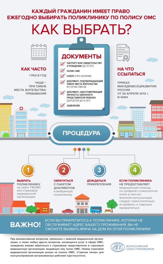 Важно! Принцип прикрепления к поликлинике по месту регистрации отменен. Никаких объяснений по поводу смены поликлиники не требуется.