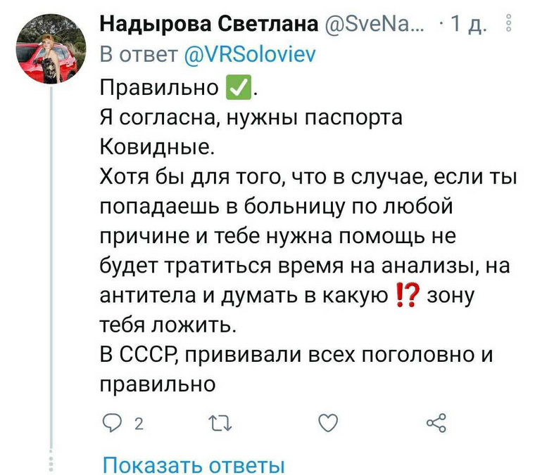 Они считают, что прививать всех поголовно, как в Советском Союзе, правильно.