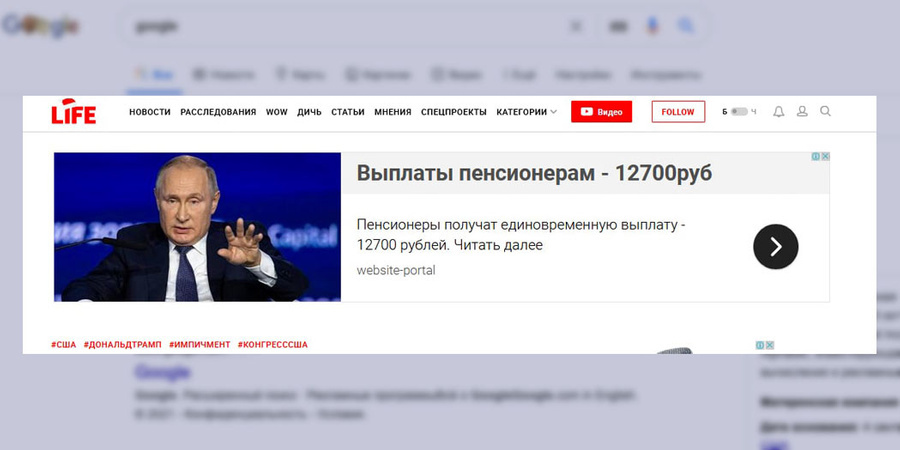 "Путин подписал указ о новых выплатах!", "Мишустин сообщил о дополнительных пособиях для многодетных семей!" — типичные заголовки, которыми пользуются мошенники при размещении рекламы в Google и "Фейсбуке". Кликнув по такому сообщению, пользователь попадает на поддельный сайт госуслуг и теряет тысячи и десятки тысяч рублей. Подобная "реклама", публикуемая с помощью рекламных инструментов Google на сторонних сайтах, стала буквально символом 2020 года для интернет-пространства. Такими же рекламными сообщениями пестрит "Фейсбук". А есть ещё "реклама" на страницах самого Google, зачастую тоже мошенническая. А Google вообще в курсе проблемы? Почему он ничего не делает?