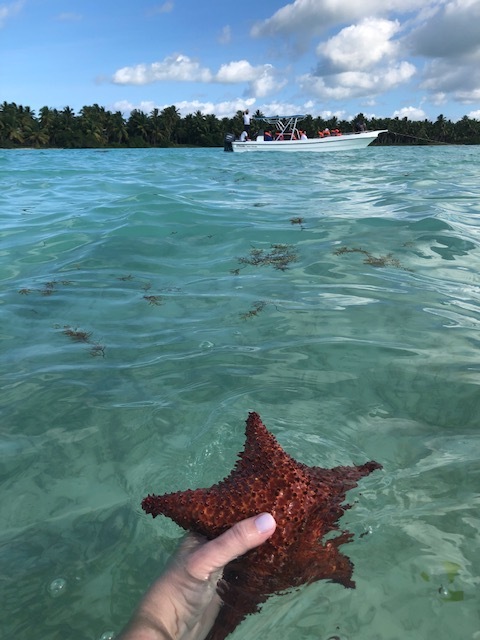 Остров Саона — самый разрекламированный и известный остров Доминиканы, вам сразу скажут, что именно на этом острове снимали рекламу шоколада Баунти, покажут знаменитую пальму «Баунти» и конечно же позволят устроить фотосессию с этой пальмой. Саона — самый крупный остров, относящийся к Доминиканской Республике, находится в провинции Ла-Романа и входит в состав юго-восточного национального заповедника. Поэтому отдыхающим на курорте Ла-Романа попасть на Саону гораздо быстрее и проще, чем тем, кто отдыхает в Пунта Кане. Моя экскурсия от «Двух Бананов» включала в себя трансфер отель — Саона-отель, время на острове с купанием, загоранием и вкусным обедом с морепродуктами, посещением мангровых зарослей и прогулкой в залив с морскими звездами. Все было на высшем уровне, поэтому могу сказать смело — посетить Саону стоит, там нереально красиво и живописно! А морские звезды — просто чудесные создания! Испытаете массу положительных эмоций.