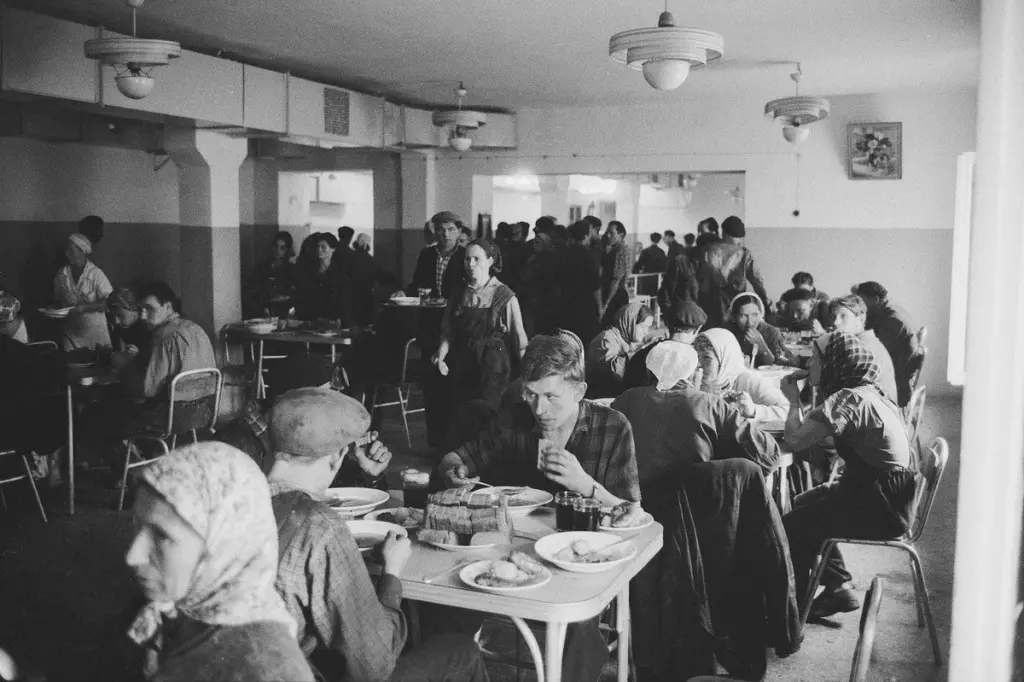 Ещё нужно сказать, что в заводских столовых еда была. Работников нужно кормить! А то как они пятилетку выполнять будут? Обед недорого обходился, меньше рубля. В некоторых цехах ещё молоко за вредность давали по специальному талончику. Конечно, сильно вкусно там не было, но поесть можно.