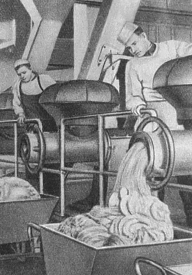 Было переведено на фабричное производство хлебопечение. Именно из Америки привезён механизированный способ изготовления «французских» булочек, которые в СССР называли батоном «городским».