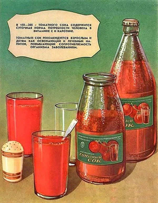 Произошла и техническая революция в производстве соков. Делегация во главе с Микояном подсмотрела также, насколько американцы неравнодушны к апельсиновому и томатному соку. С апельсинами в Стране Советов было туго, не росли они у нас, а вот переработкой томатов занялись всерьёз. И это удалось! Трёхлитровые банки с напитком из помидоров держались на полках магазинов даже в самые дефицитные годы!