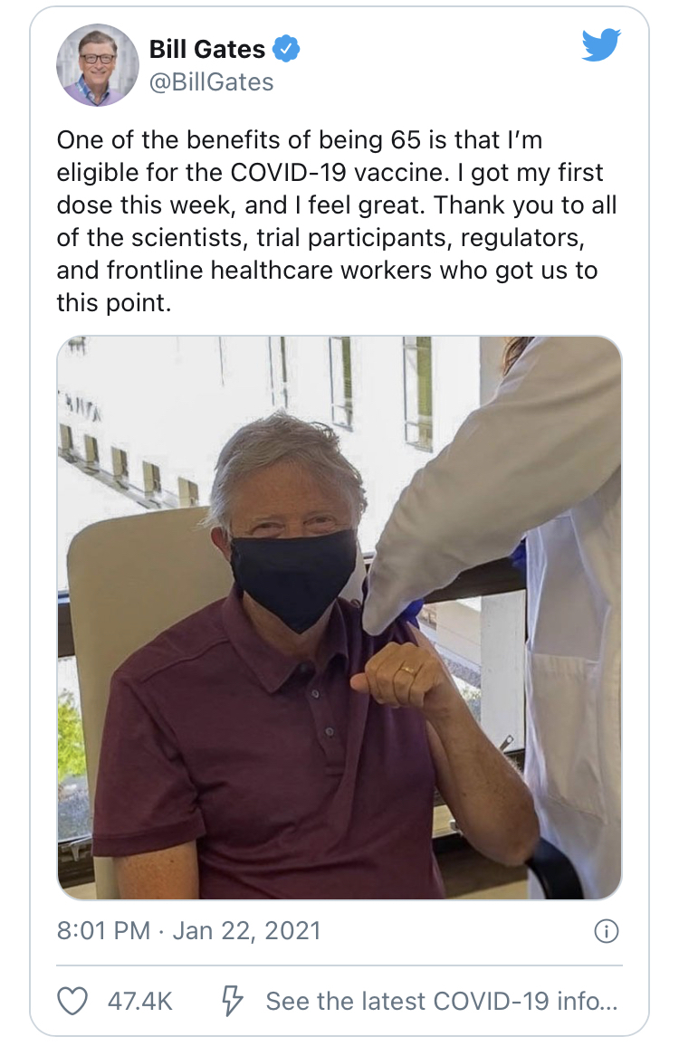 Прививку от коронавируса поставил Билл Гейтс. Без "чипа"?