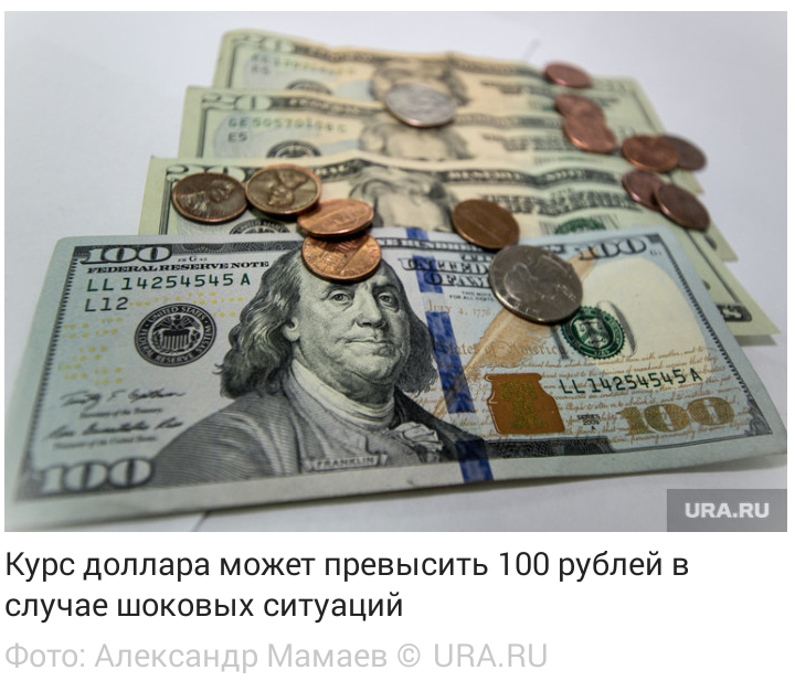 Курс российской валюты достигнет 100 рублей за доллар в случае введения серьезных санкций или резкого падения цен на нефть.
