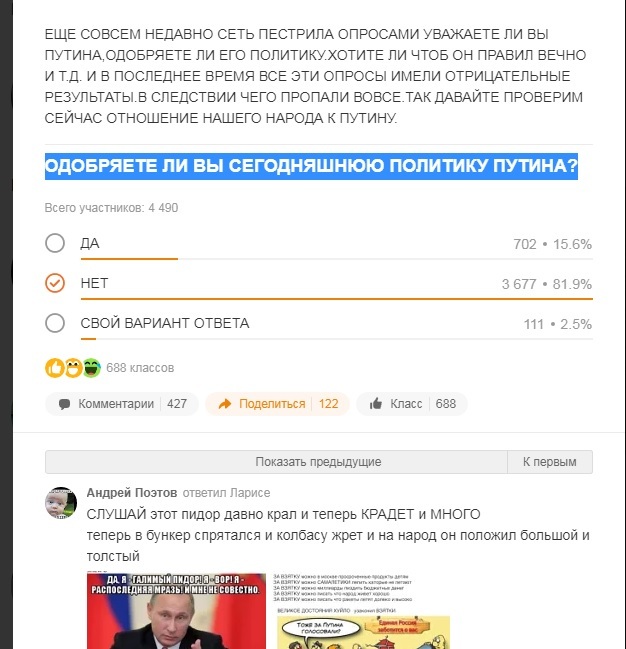 Вот я в свете происходящего не давно провел своеобразный опрос на эту тему в одноклассниках и вот результат: