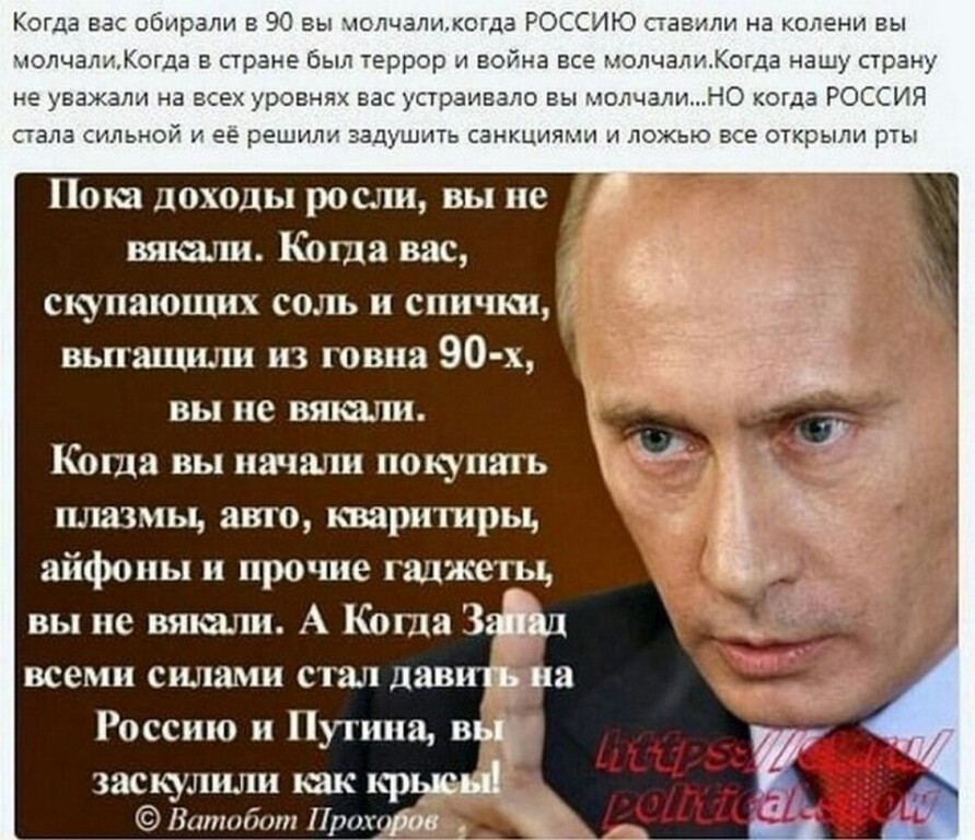 Значит либо в команде Пу,кормишься из его кормушки и ничего не видишь вокруг, либо сидишь где нить на Канарах..