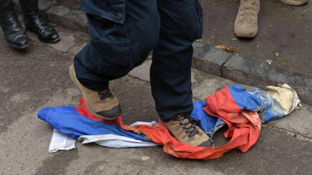 Но так называемые герои, решили растоптать флаг и показать свое не уважительное отношение к Государственному флагу Российской Федерации.
