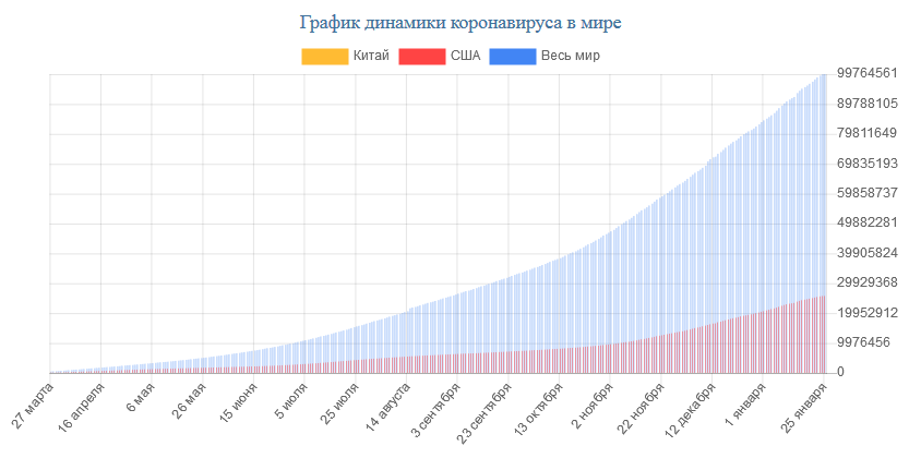 На сегодня, 25.01.2021, в мире всего зарегистрировано: