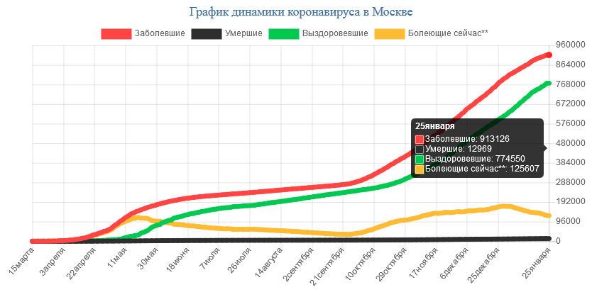 На сегодня, 25.01.2021, в Москве всего зарегистрировано: