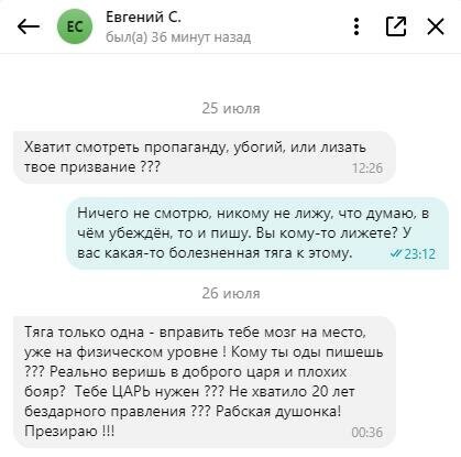 Например и мне постоянно поступают оскорбления и угрозы в личных сообщениях и в соцсетях от навальнят и просто сторонников оппозиции. Вот парочка таких сообщений:
