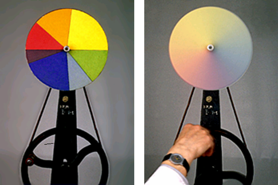 Все больше и больше в последнее время приходят воспоминания о далеком прошлом. Вот и сейчас вспомнилось ни с того, ни с сего, как я проделал, еще учась в школе, простейший опыт. Сидел дома, сделал из картона круг закрепил на иголке, нанес на него семь цветов и наблюдал, как при вращении образуется чистый белый цвет.