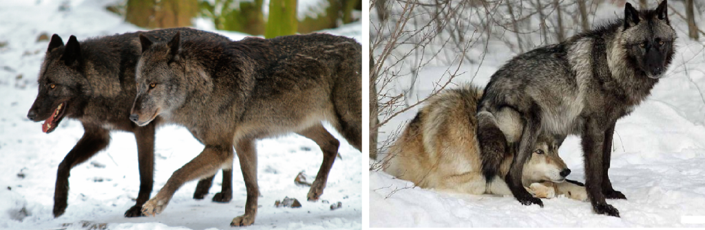 Два подвида легко скрещиваются и дают сильное, жизнеспособное потомство - в одной стае можно заметить, как серый мех, так и чёрный.