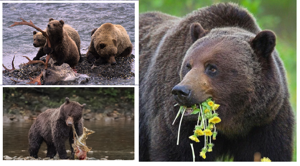 На богатые равнины пришли и другие хищники, в чей рацион входят ягоды, плоды деревьев, рыба, корешки деревьев и млекопитающие разных видов – медведи гризли.