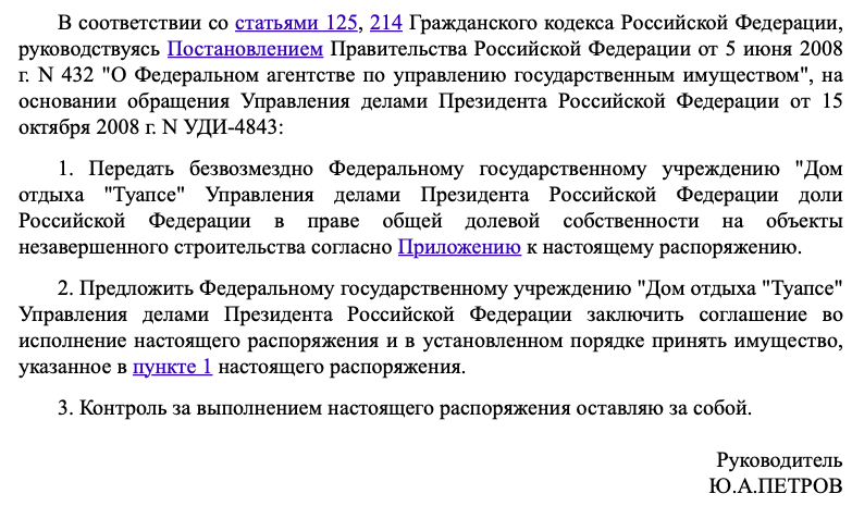 Знаете ли вы, что в "КонсультантПлюс" есть одно очень интересное Распоряжение от 2008 года, которое как мне кажется наталкивает на мысль о так называемом "дворце Путина" и на ум почему-то сразу приходит последнее расследование Алексея Навального. Давайте же взглянем на данное распоряжение.