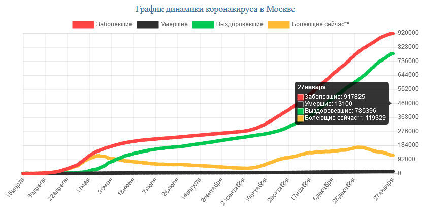 На сегодня, 27.01.2021, в Москве всего зарегистрировано: