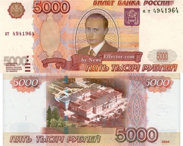 Тем не менее, на просторах интернета уже появились шуточные изображения пятитысячных купюр с портретом главы государства.