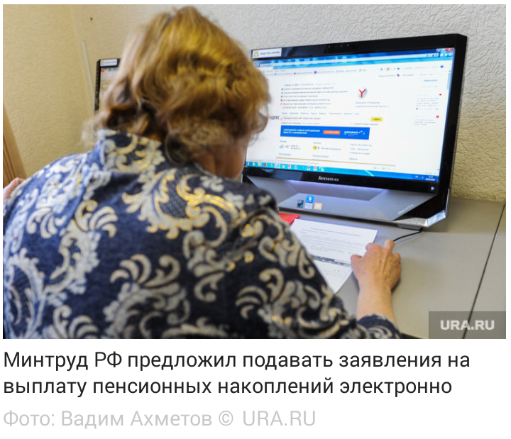 Минтруд России разработал проект постановления, которое позволит подавать заявления о единовременной выплате пенсионных накоплений в Пенсионный фонд РФ электронно — в личном кабинете ПФР, через сайт госуслуг или многофункциональные центры (МФЦ). Об этом журналистам рассказали в самом ведомстве.