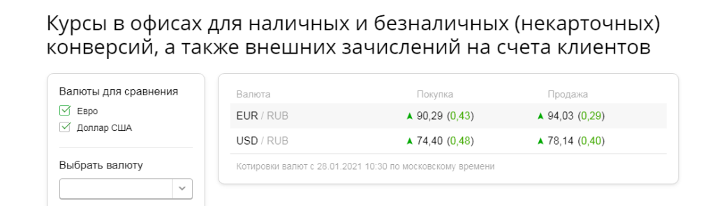 Вот, например, как выглядят курсы валюты на сегодня в Сбербанке.