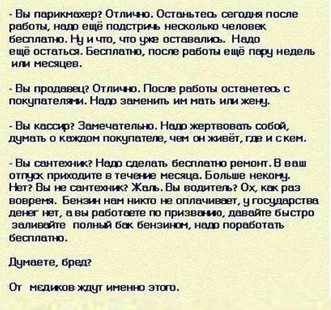 НИЗКАЯ ЗАРПЛАТА МЕДРАБОТНИКАМ КОМПЕНСИРУЕТСЯ ВЫСОКИМ УРОВНЕМ ОТВЕТСТВЕННОСТИ.