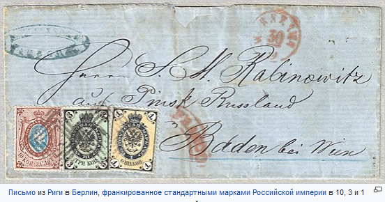 С 1864 года в России была введена обязательная оплата заграничной корреспонденции почтовыми марками.