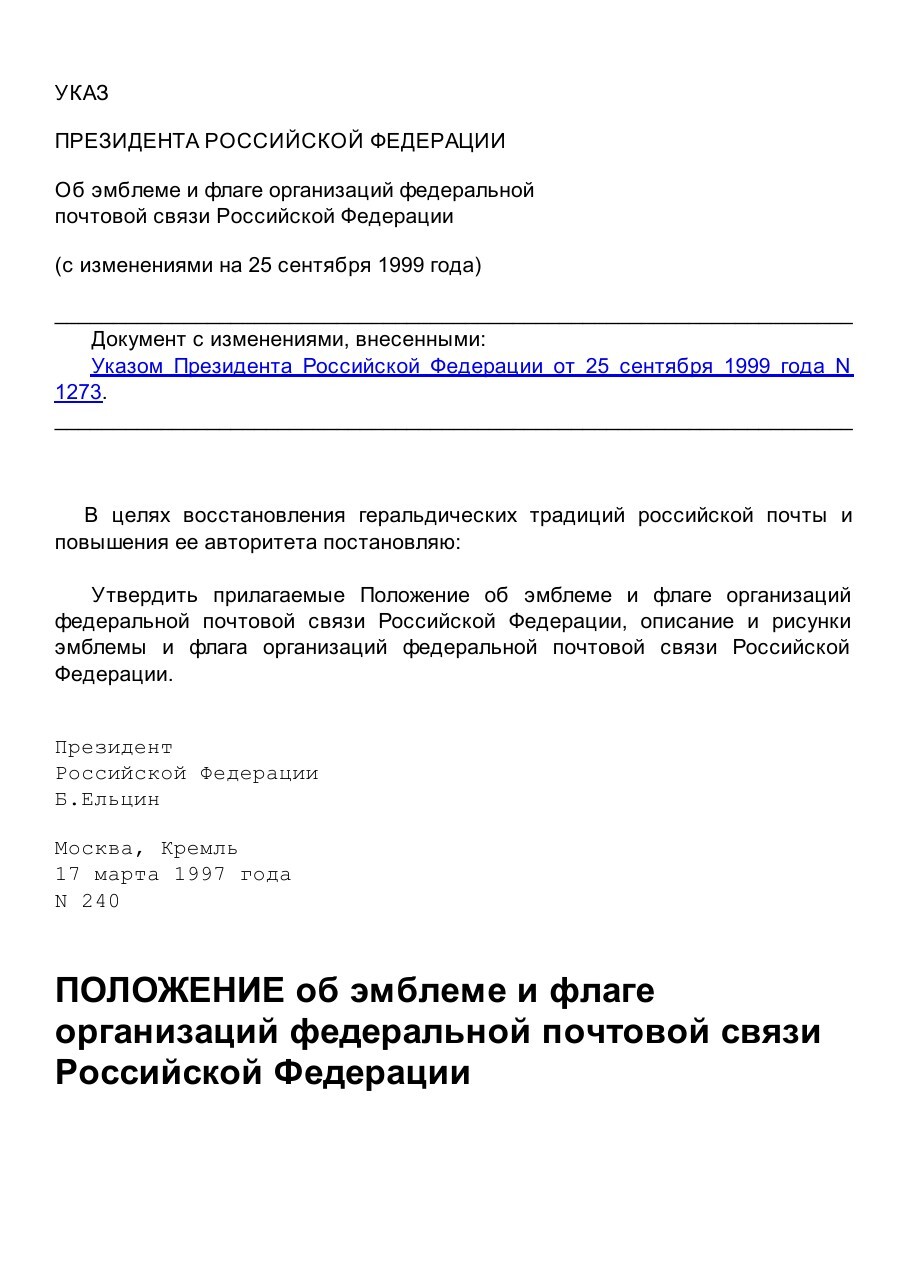 В 1994 году был учрежден профессиональный праздник работников почтовой связи — День российской почты. Помимо этого, в 1997 году в целях восстановления геральдических традиций российской почты и повышения её авторитета были учреждены флаг и эмблема организаций федеральной почтовой связи Российской Федерации.