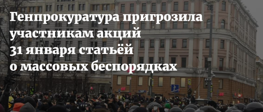 Организаторы несанкционированных акций, намеченных в России на 31 января, призывают своих сторонников к агрессии в отношении правоохранителей, заявила в свою очередь официальный представитель МВД РФ Ирина Волк.