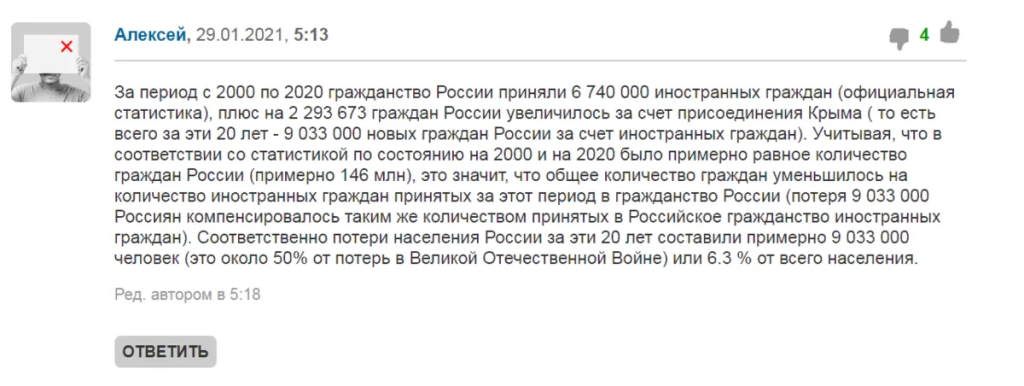 "Как яхту назовёшь, так она и поплывёт". Оговорка по Фрейду? Или у них действительно есть план по нашей убыли? И они с ним великолепно справляются. Вот примерно так и понимается написанное и сформулированное ими. А вот один комментарий, который подтверждает моё мнение:
